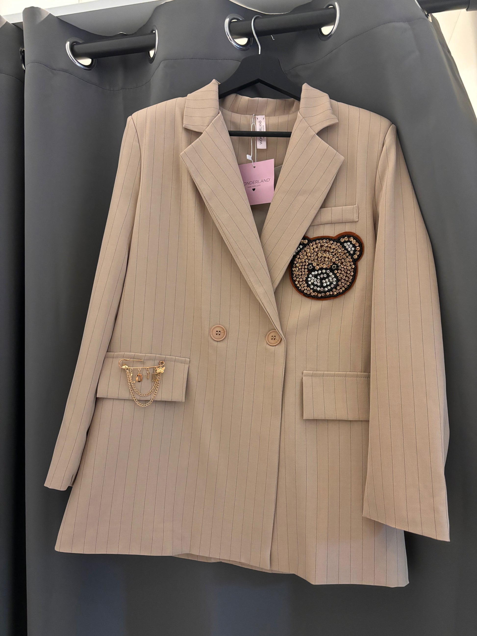 Blazer doppiopetto gessato beige e nero customizzato by wonderland.