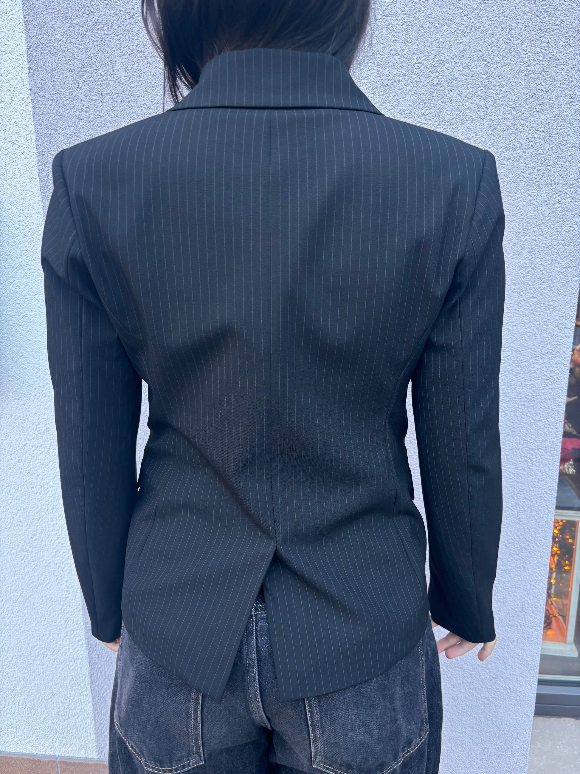 Blazer YOUDECIDE doppio petto gessato con spilla.