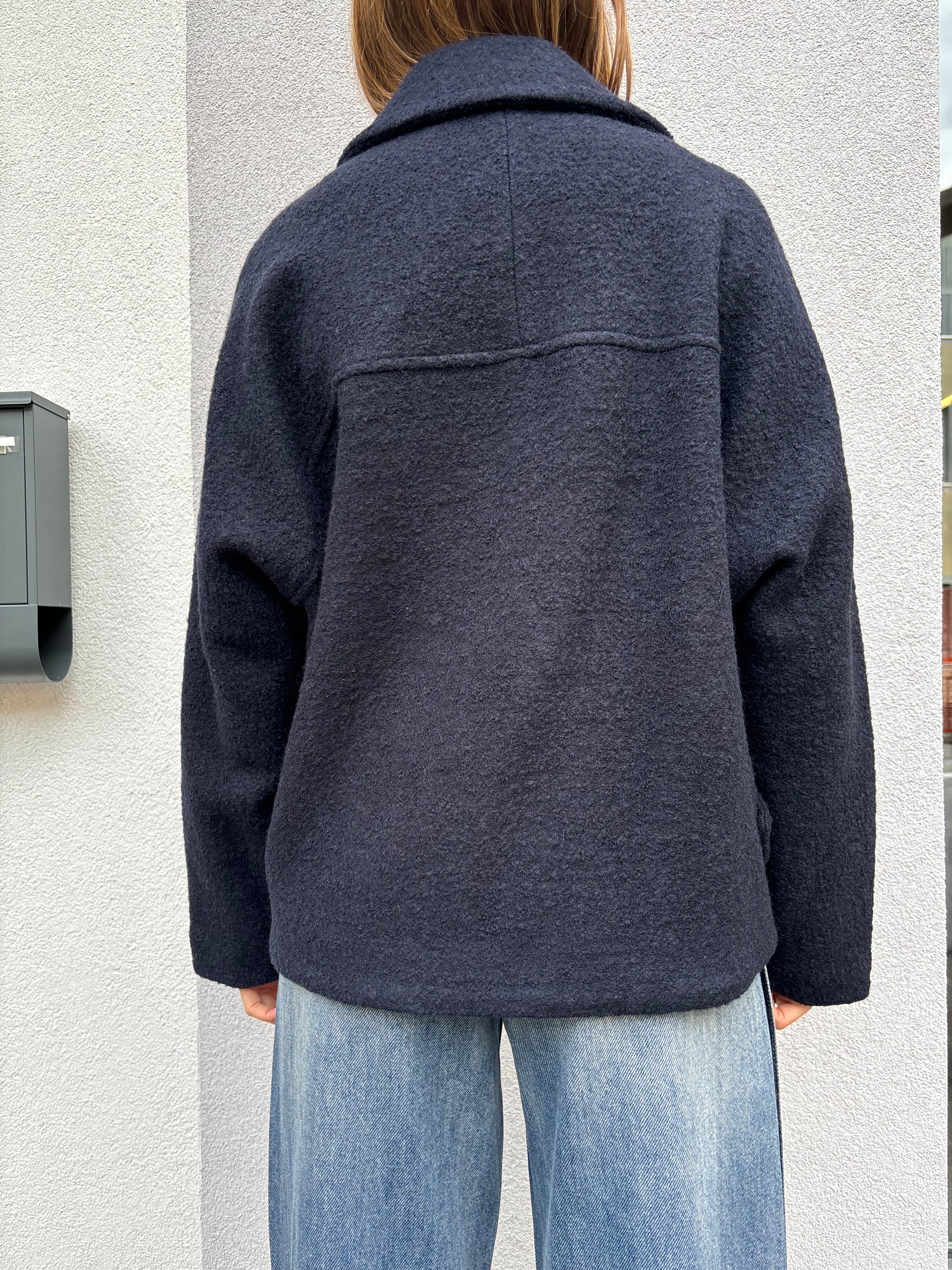 Cappottino doppiopetto vestibilità oversize in pura lana.